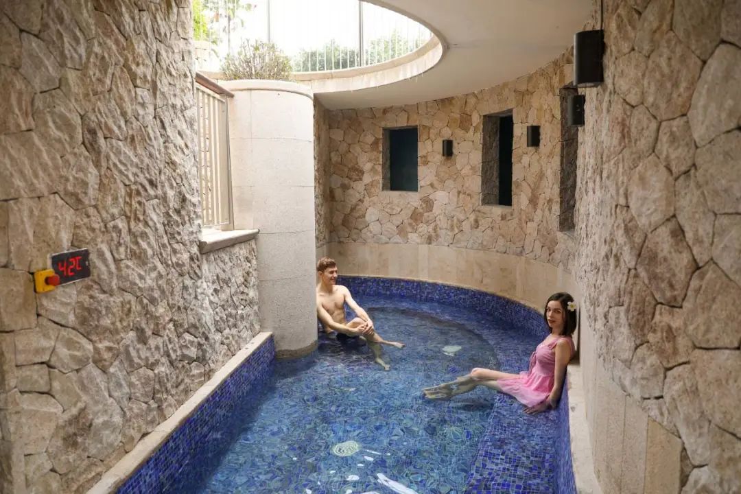 温泉逆龄滋养,深度放空身心。如同名字般,七星伴月海泉汤屋拥有7个独立疗养性的汤池:中药池、牛奶浴、玫瑰池、儿童池、盐浴等....在这里您可以根据自己的需求选择不同的浴池泡浴。汤池旁还有独特的按摩躺椅、按摩水柱给予游客享用。寒冷的秋冬日里,身体浸在热汤中,随着氤氲水汽袅袅升起,感受那种让每个毛孔都舒畅的温暖,疲惫一扫而空。