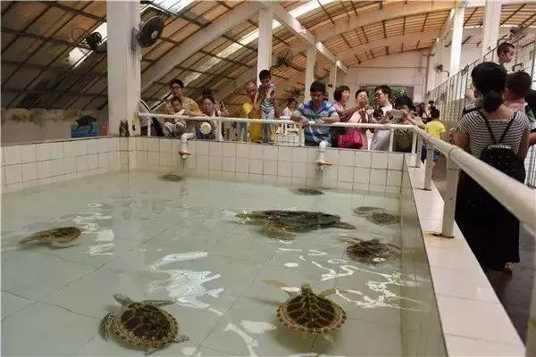 海龟馆——可参观的海龟种类有:绿海龟,玳瑁,棱皮龟、蠵(xi)龟和丽龟,最大年龄有98岁。