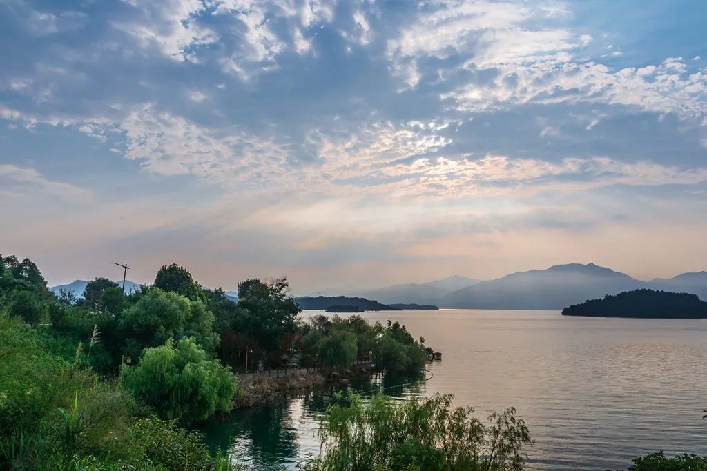 “人间天上一湖水,万千景象在其中”,这是诗人对郴州东江湖的赞美。而走近她,碧绿澄澈的湖水上,星星点点的湖岛静卧,青山延绵绿意无边,一幅灵动的山水画卷映入眼帘,让人痴醉于此,流连忘返。