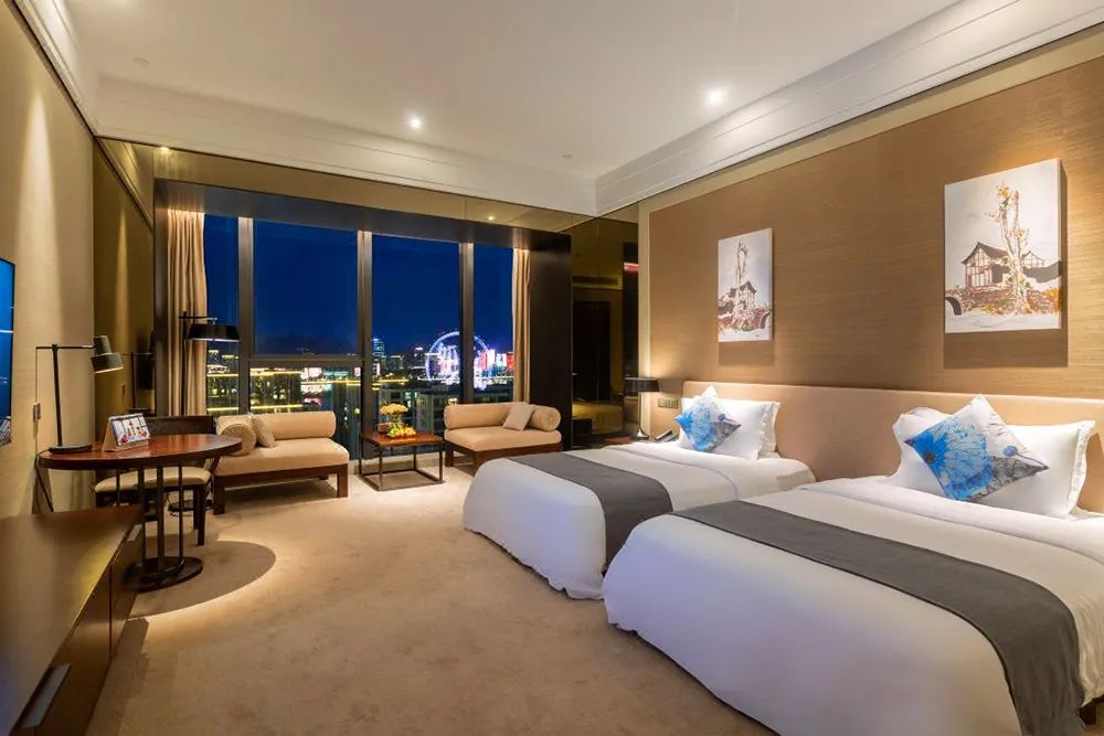 (可点击周末酒店小程序👇直接购买)套餐包含 【宿】2间夜 豪华城景双床房 50平米 双床1.3米 --升级福利:视酒店房态,免费升级至城市海景双床房 或 高级湖景双床房(以酒店实际确认为准) 【食】每间夜双人自助早餐 【享】酒店高空室内恒温泳池、健身房 【享】酒店免费停车、WIFI 购买须知 *此房券支持(未兑换)随时退/过期自动退,需至少提前1天在17点前预约 *此房券入住有效期即日起至2024.06.30,周末不涨价,清明(4.3-4.5)、五一(4.30-5.4)、端午(6.7-6.9)入住需补差,详见预订页 *自助早餐收费参考:1.2米以下儿童免费,1.2-1.5米半价,1.5米以上128元/人(实际以酒店前台收费政策为准)