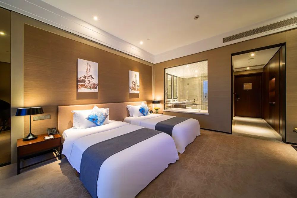 酒店主力房型面积50㎡起,大床2米,双床1.3米,二娃家庭放心睡!干湿分离的卫浴间,大部分客房都配有浴缸,游玩一整天可以舒舒服服泡个澡。