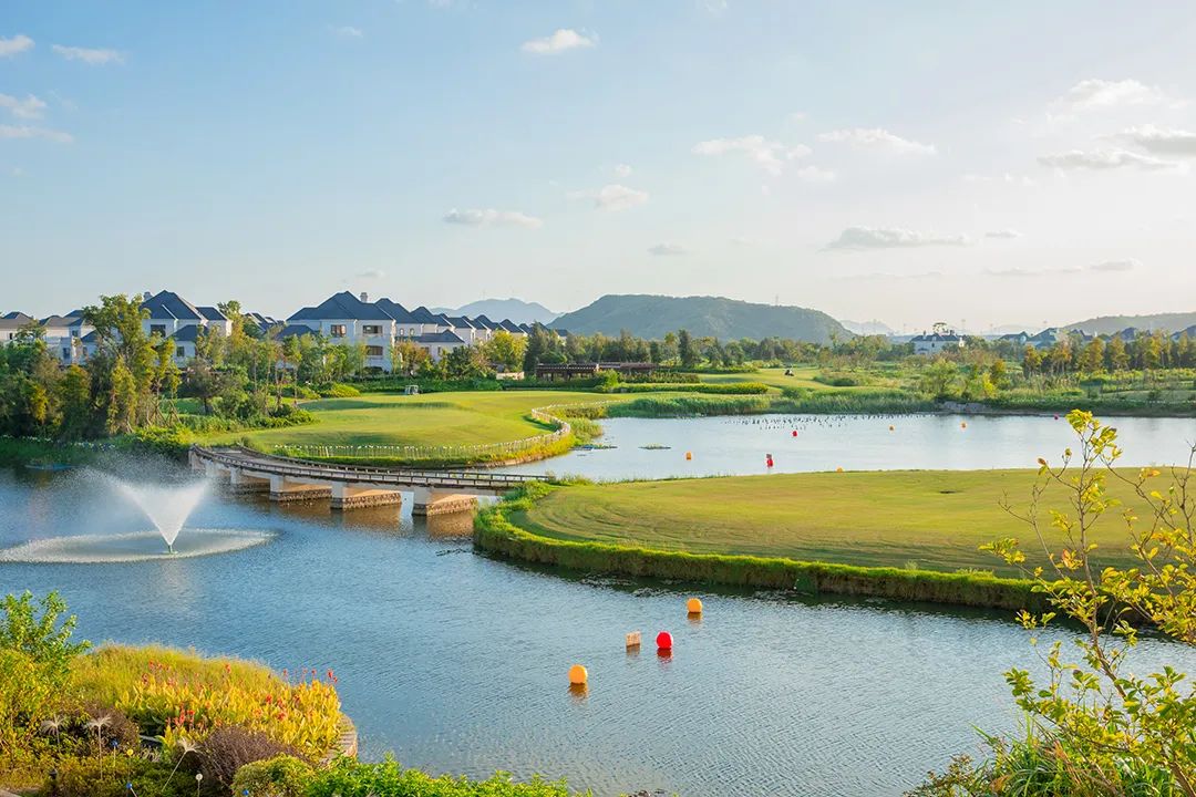 ▲酒店四周环境优美,大片的高尔夫球场绿地与美丽的海湾相交融,空气清新醉人