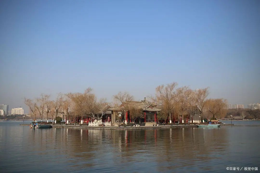 大明湖是济南市区内一处著名的天然湖泊,也是济南三大历史名胜之一。它位于济南市中心偏东北处、旧城区北部,是由众多泉水汇流而成,湖水经泺水河注入小清河。水面面积57.7公顷,水深平均2~3米,是繁华都市中一处难得的天然湖泊。