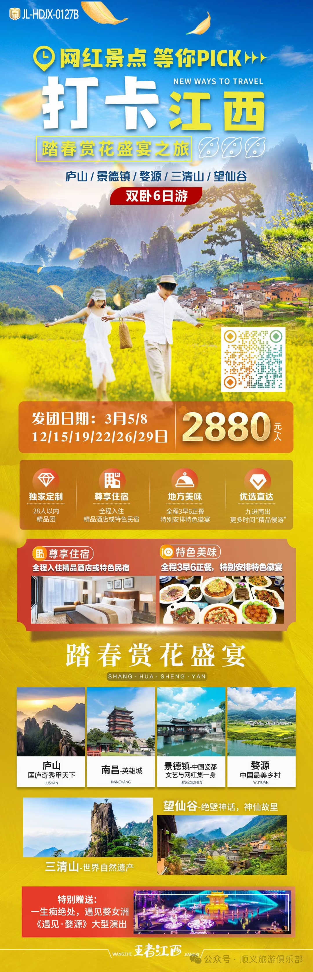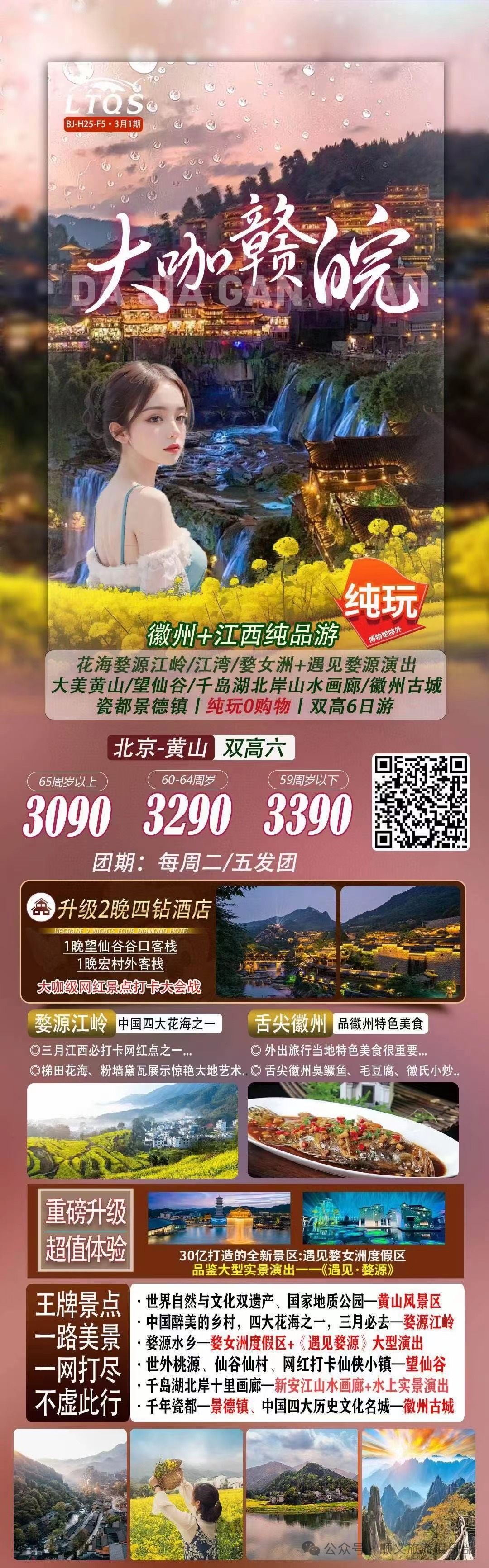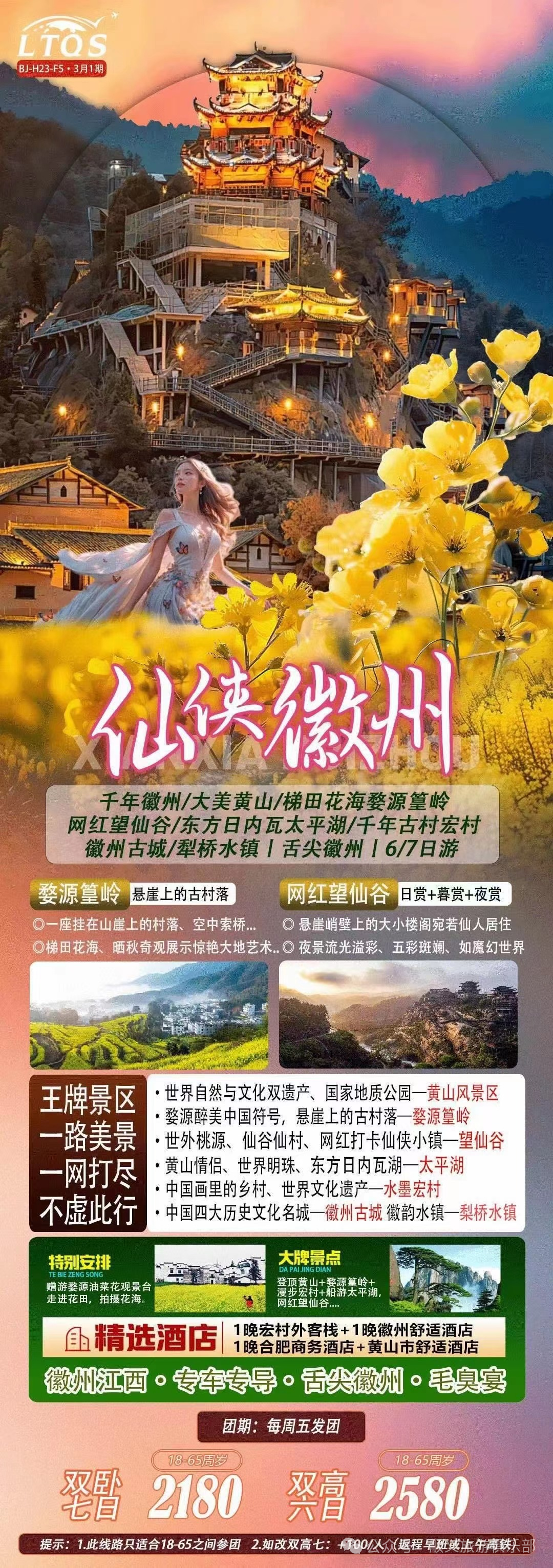 您现在的位置是:首页 > 国内旅游目的推荐 > 正文 国内旅游目的推荐 【国内游-安徽江西】大美黄山、西递宏村!江西婺源赏花之旅! admin2024年03月03日 03:43:56国内旅游目的推荐117 五岳归来不看山黄山归来不看岳大美黄山报名咨询更多行程以及具体线路信息详询销售! 转载请说明来源于"旅荐网",部分内容转载自网络,如有侵权请联系qlwl@foxmail.com删除 本文地址:https://www.15386.cn/post/16262.html 上一篇 深圳 华侨城 艾美酒店 下一篇 虽然全国出游前已预知死期,但秦始皇仍然诲疾忌医,不惧命运 相关文章 宣威市“五一”游玩攻略——火腿之乡·峡谷心跳·古韵新风 【旅行攻略】避开人挤人,兰溪两大一小短途旅行指南 呼伦贝尔旅游计划 周末两天一夜浙江台州精华游玩攻略,高铁往返,不走回头路! 【茶业资讯】多国旅行商旅游达人走进武夷山 沉浸式体验武夷山水茶韵 旅游攻略|悬崖上的千年佛国——麦积山 特别策划 | 五一跟着栖山下去旅行!非遗体验一日游攻略,无脑冲! 五一假期去前必看!超实用的黄山旅游攻略 超详细版丨南极旅行超全攻略(80页3万多字),全面实用省心! 五一出行必看!OK镜旅行佩戴护理全攻略,安心旅行不“翻车”! 发表评论 取消回复 评论列表 这篇文章还没有收到评论,赶紧来抢沙发吧~