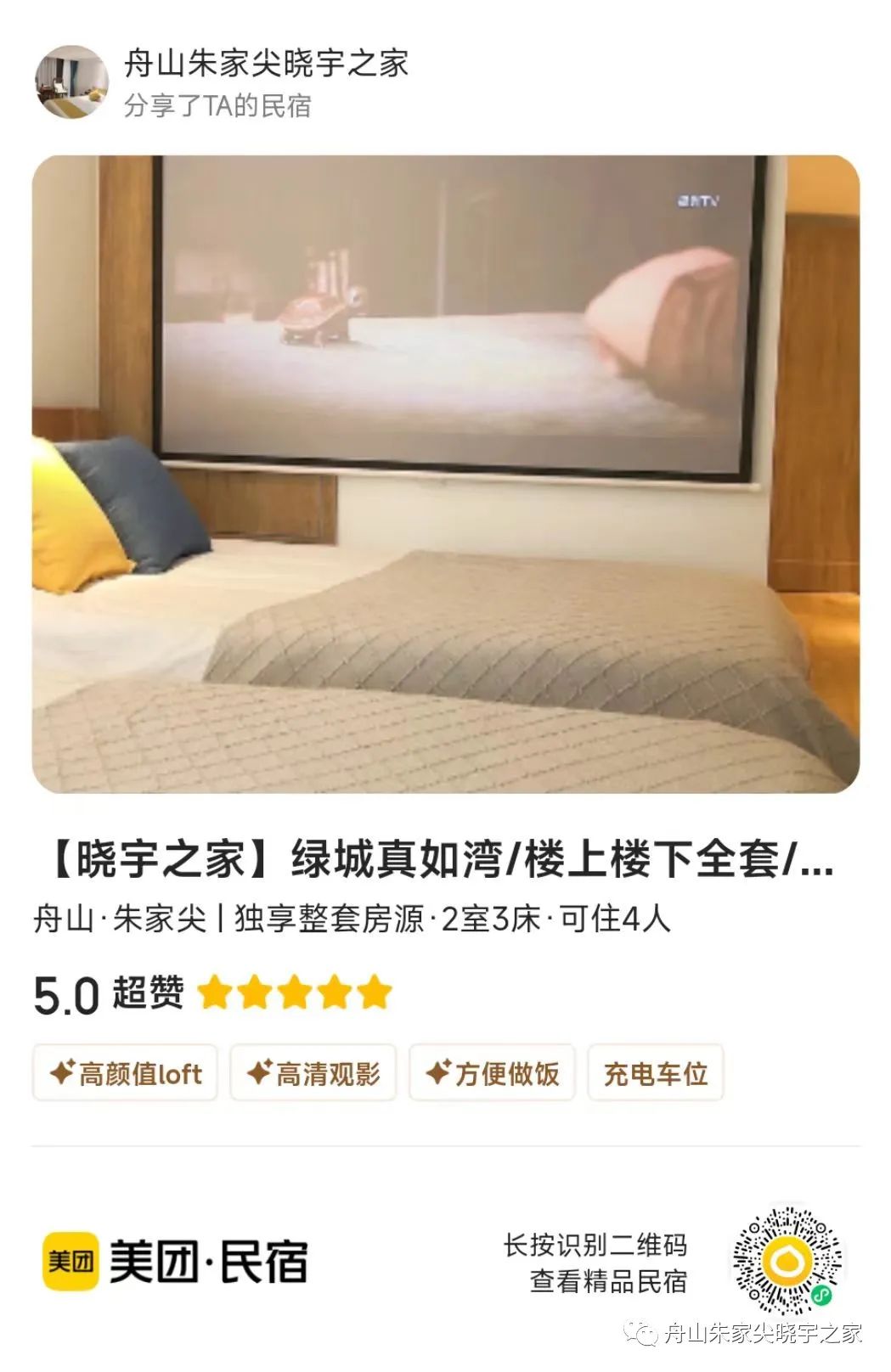 【住宿】朱家尖晓宇之家度假公寓 2023年4月开办,座落于朱家尖观音法界附近,去普陀山蜈蚣峙码头非常方便,有大型免费停车场,还可以给电车充电。店家还能免费提供赶海工具。联系方式:13362800589