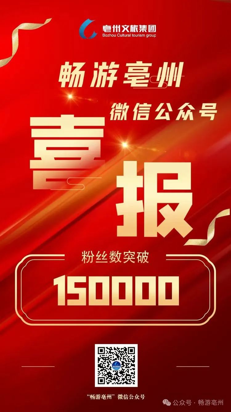 截至2024年2月底,集团官方微信公众号“畅游亳州”粉丝数为156850。“畅游亳州”微信公众号坚持常态化为市民游客推送喜闻乐见的亳州旅游资讯和打卡攻略,在此,感谢每一名粉丝一直以来的关心和支持!