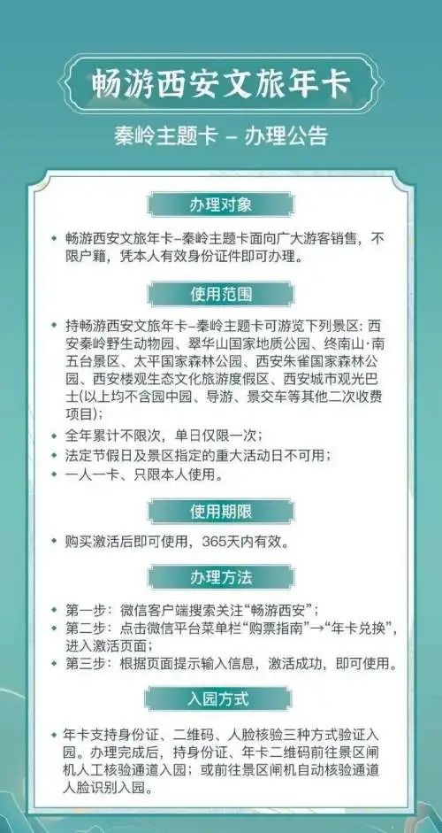 畅游西安文旅年卡—秦岭主题卡