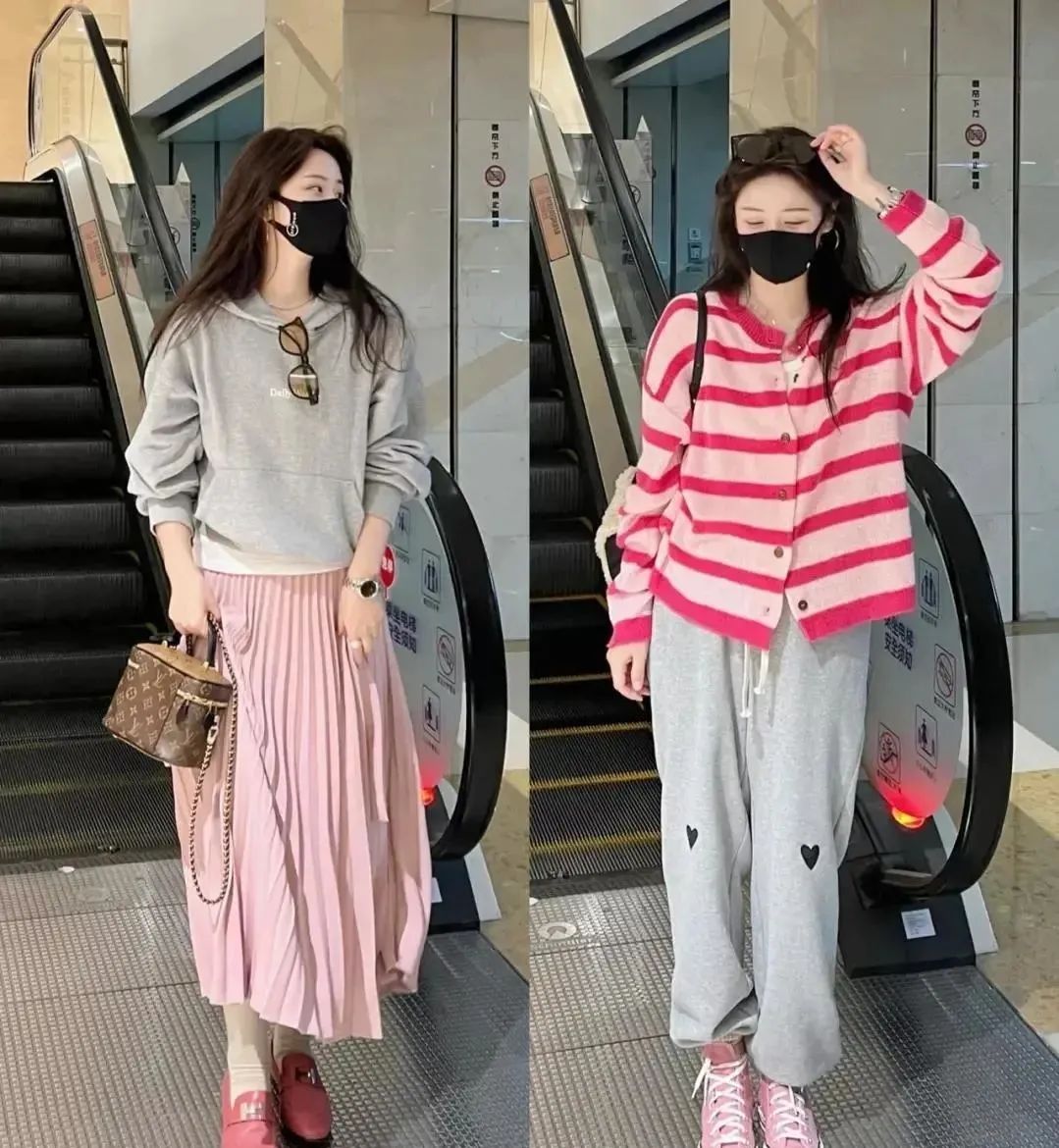 今年非常流行浅灰+樱花粉的配色,不仅洋气,而且温柔有女人味,最关键的是显白,黄皮女生可以尝试下。浅灰色卫衣搭配樱花粉色百褶裙,颜色都属于莫兰迪色系,清淡又不失高级感,给人一种清新典雅的感觉,非常适合青春,很美,很清甜。