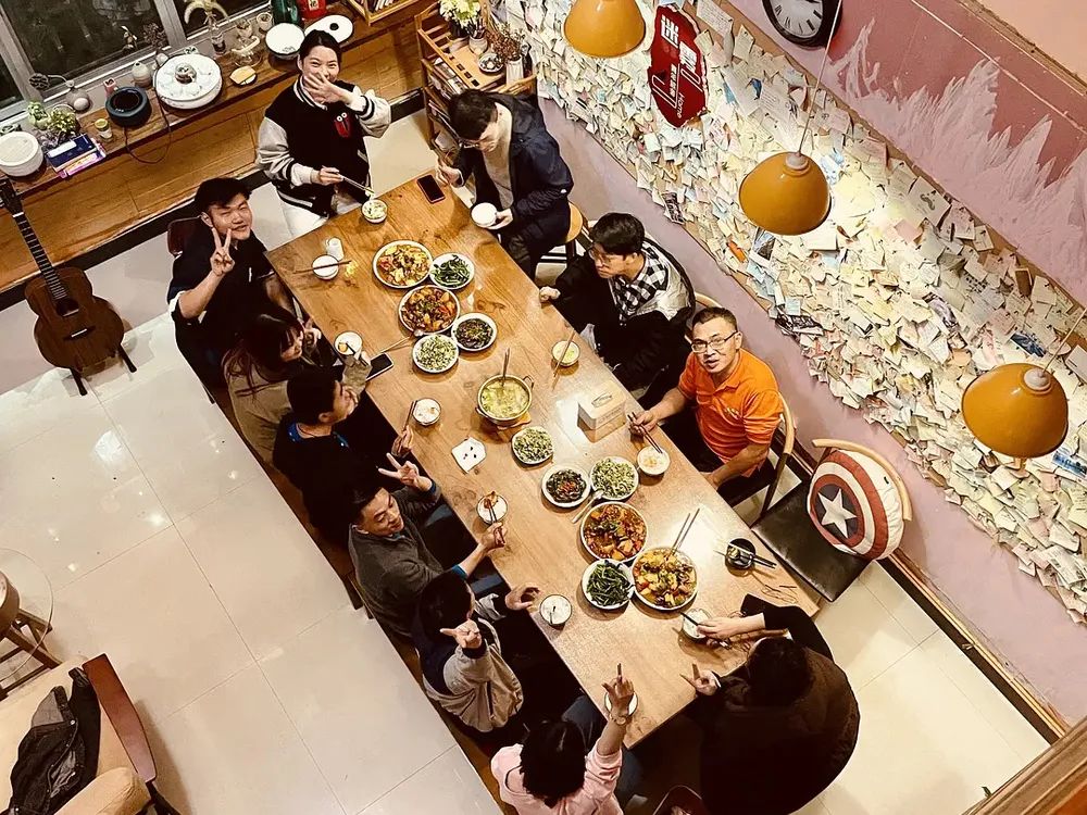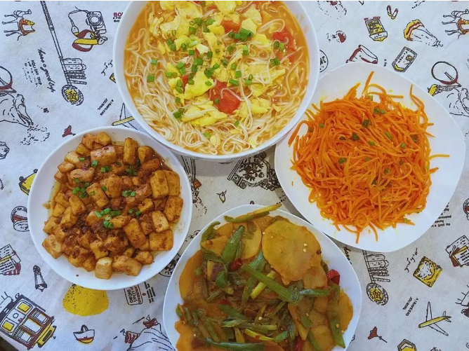 义工大厨出手的菜饭 住宿,也是个重要的问题,床铺是【上床下桌】类似大学宿舍的那种,整个店里你加入的话又添一员大将,那么就有四个人啦,离我们称霸厦门民宿又进了一步,至于我,我是一个精神的存在敲打出一只只文字搭建【栖城】和你之间的桥梁。