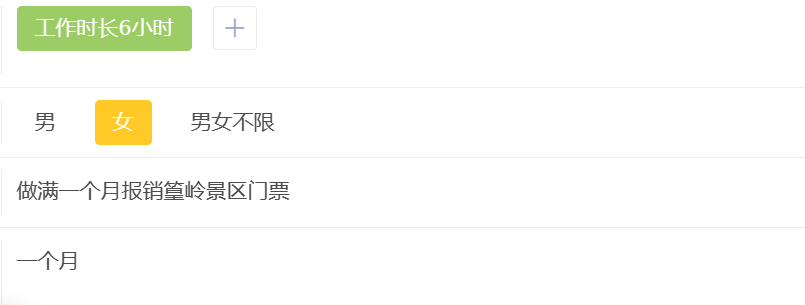 工作时长:六小时,每周休息两天。(至少一个月起哦)
