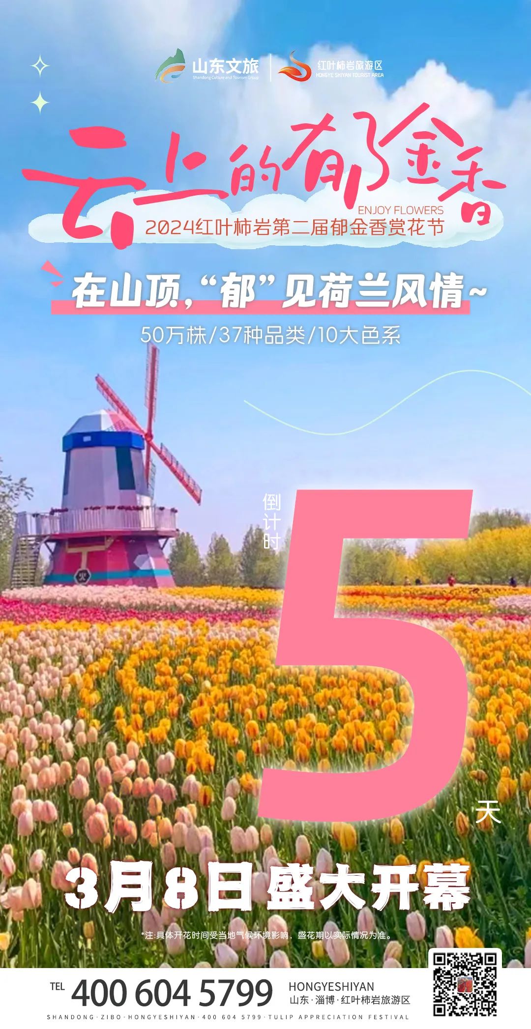 3月8日,红叶柿岩第二届“云上的郁金香”赏花节将盛大开幕,届时,50万株、37种、10大色系郁金香竞相开放,一片荷兰风情的童话花海缓缓展开,红叶柿岩版“莫奈花园”诚意满满,开启广大游客春天的第一场赏花之旅,有望成为山东春日赏花打卡顶流。