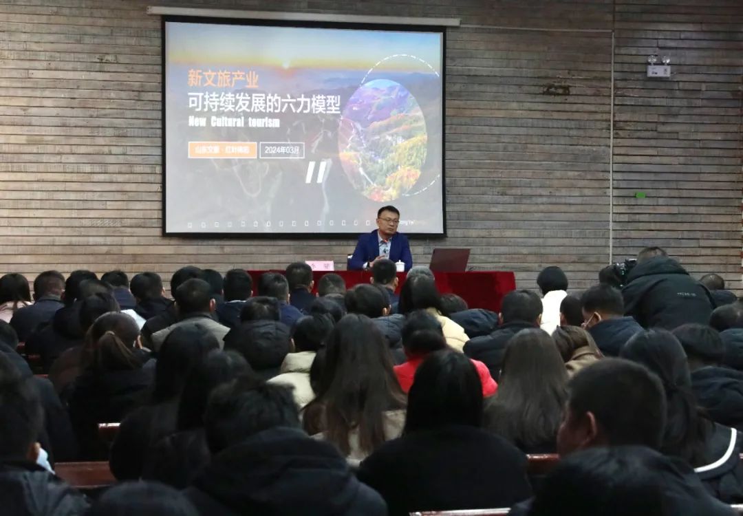 3月3日,临沂文化旅游发展集团有限公司“营销策划及运营管理专题培训”在蒙山养心园度假酒店会议室举行。山东文旅景区投资集团有限公司运营管理中心总经理、山东红叶柿岩旅游发展有限公司总经理 李鹏受邀出席并作“新文旅产业可持续发展的六力模型”专题讲座,与到场嘉宾交流共探新文旅营销模式,聚力构建行业大生态!