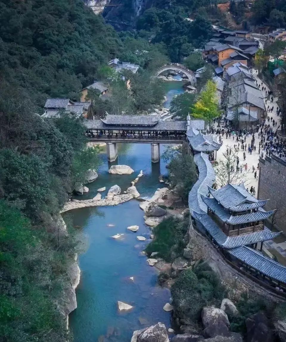游【九牛大峡谷】三口锅→彩虹瀑→迷津口→醉仙街→百舸桥→府前广场→望仙杨府→相思石→鸣 蝉巷→上码头→回程栈道→醉仙街→揽月桥→胡氏宗祠→朔望街→红糖坊→三神庙→岩铺广场→岩铺仙宿→百味街等景点。