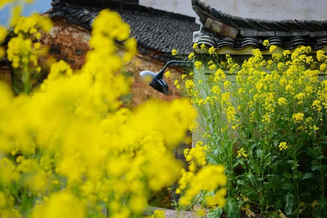 油菜花并不鲜见,某个路边田间兀自盛开或是成片争艳。只是,唯有在这,这花配了白墙黑瓦,才把这个世外桃源,充斥的宁静却又充满人烟。
