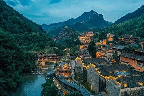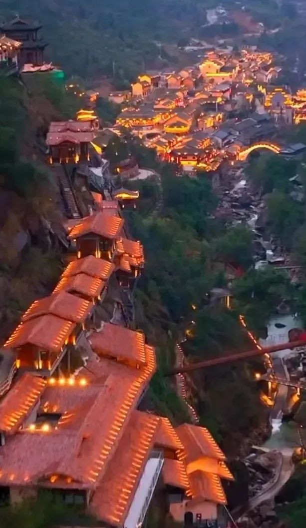 这里的每一处景观都颇具风采,是世间难得一见的“世外桃源”,沉醉于山光水色之间,心灵包袱逐渐放下,恬淡、闲适、轻松、自由,夜幕低垂,华灯初上,仙谷里的夜景开始营业,成片的灯火照亮了整个仙谷。