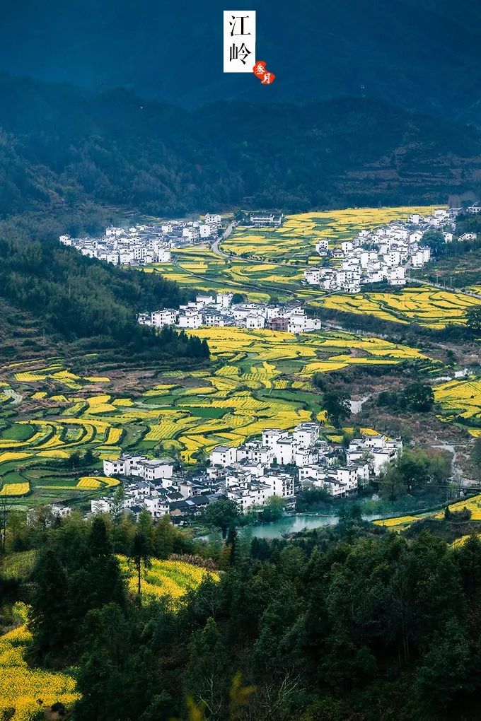 江岭的油菜花,是花海梯田与徽派建筑的结合。