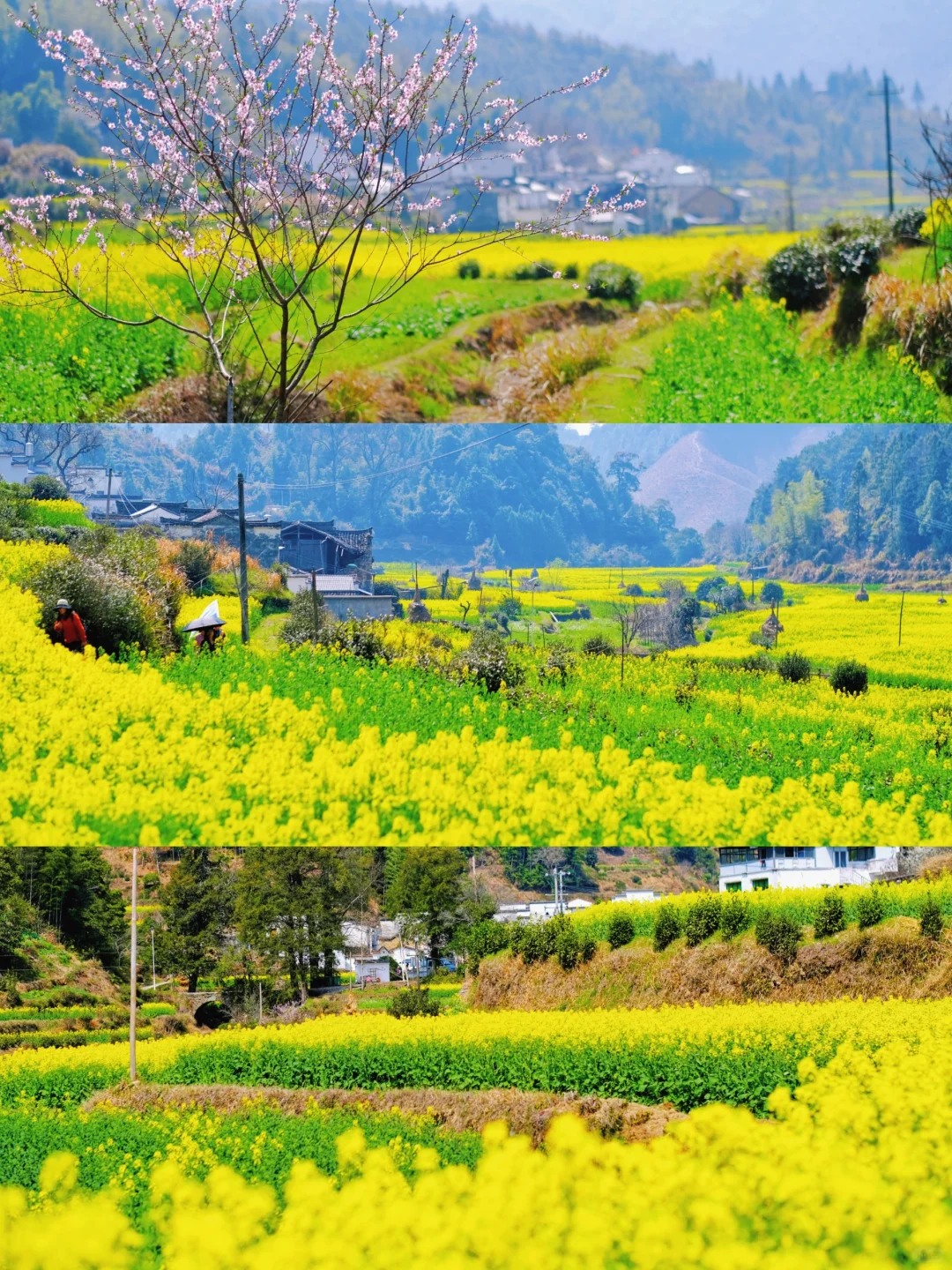 三月,婺源阳光璀璨,放眼望去黄绿黄绿的,妖娆的桃花粉,素淡的梨花白点缀其间,阳光带着独有的春天味道,黄花灿烂,你是人间理想。