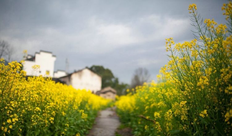青石板的小桥边,古老的旧白墙,簇这满溢的油菜花,丰盈的画面,却又有恰到好处的留白,宛若步入了一片与世隔绝的世外桃源,活力与宁静共存。