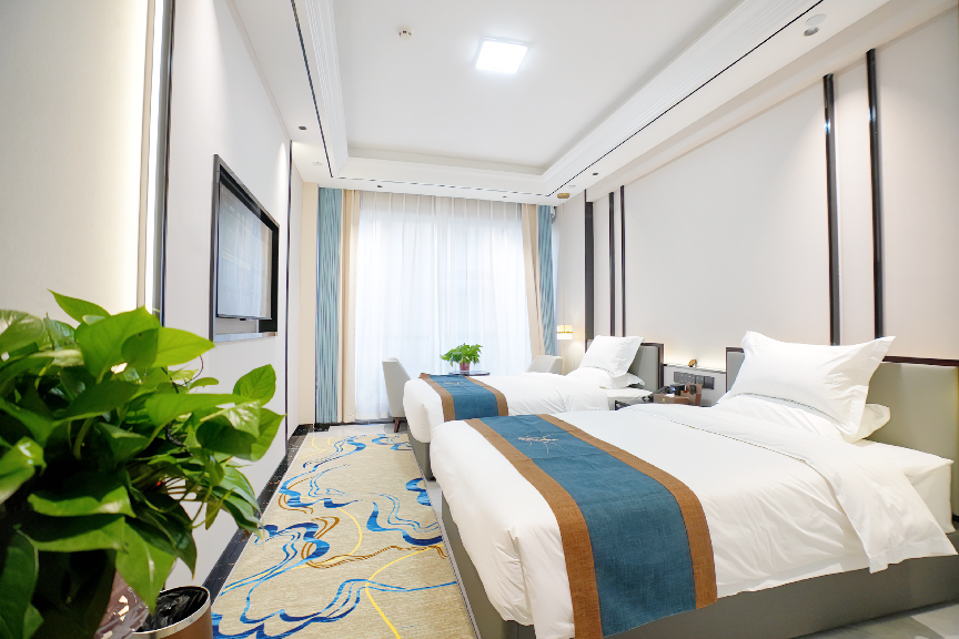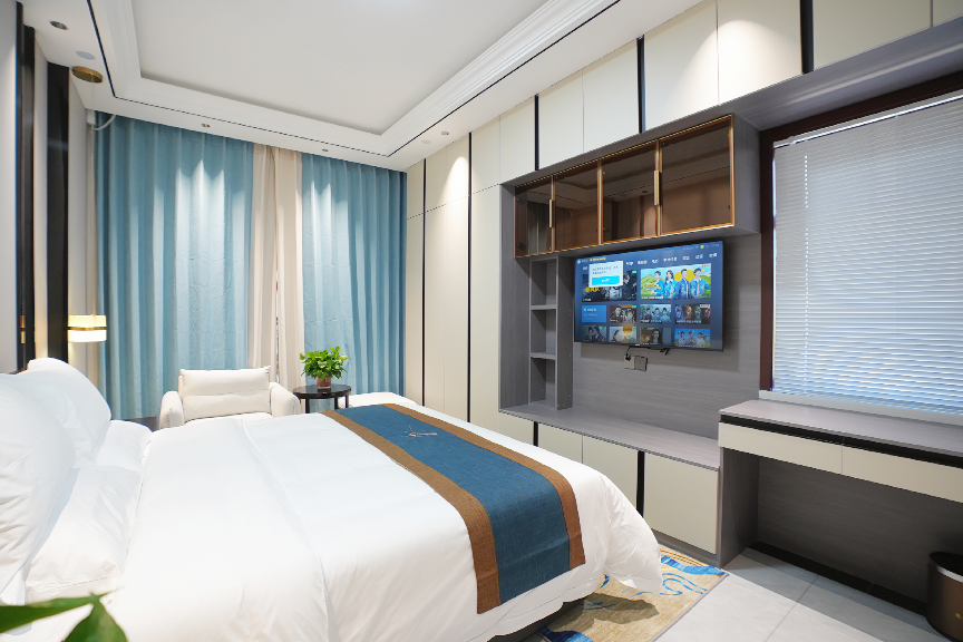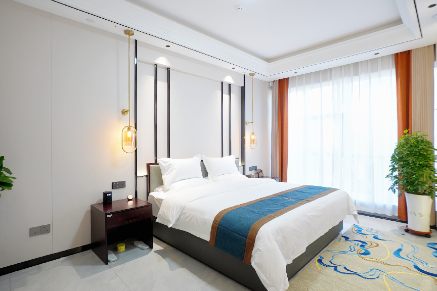 每间房间内均配备电视、电磁炉、保险箱等家用家电设备;功能齐全的中央空调,冷热兼备;从瑞典进口的最先进高档不塌陷床垫,让人在舒畅的氛围中迅速入眠,有效提高个人的睡眠质量;不仅能让您感受回店如归家一般的舒适感,更能让您体验高档酒店专业的服务。
