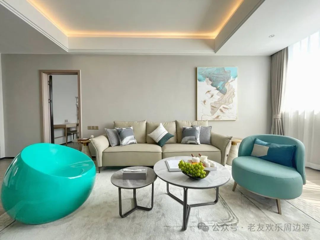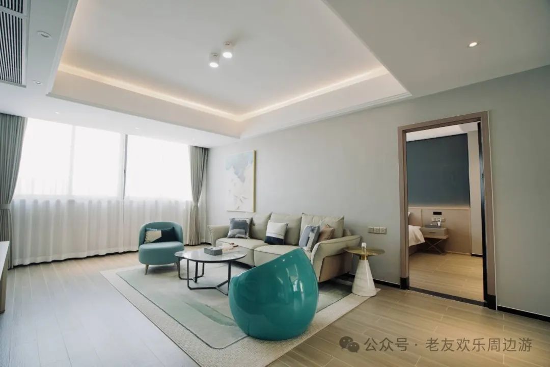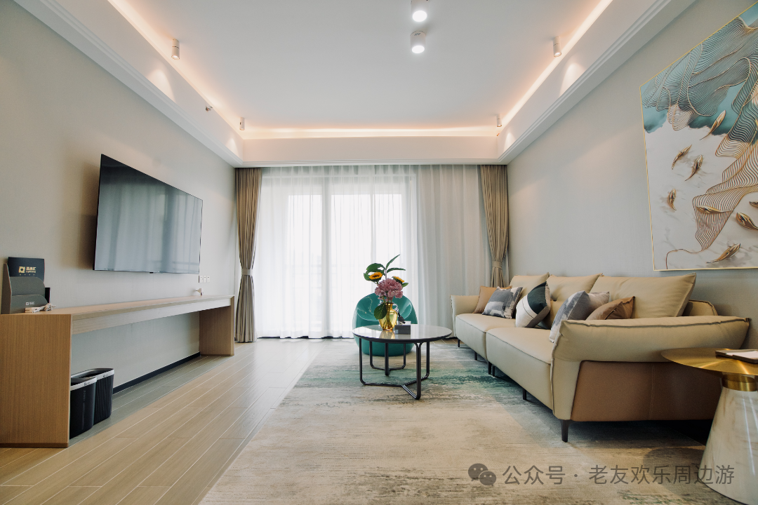 每一间套房配备了完善的家具家电,宽敞的客厅房间,明亮的光线让睡梦中醒来的你格外的舒适。高大的落地窗,阳光从窗帘透过来,仿佛看到了这趟旅途中新的希望,广阔的视野,给内心增加几分乐趣。