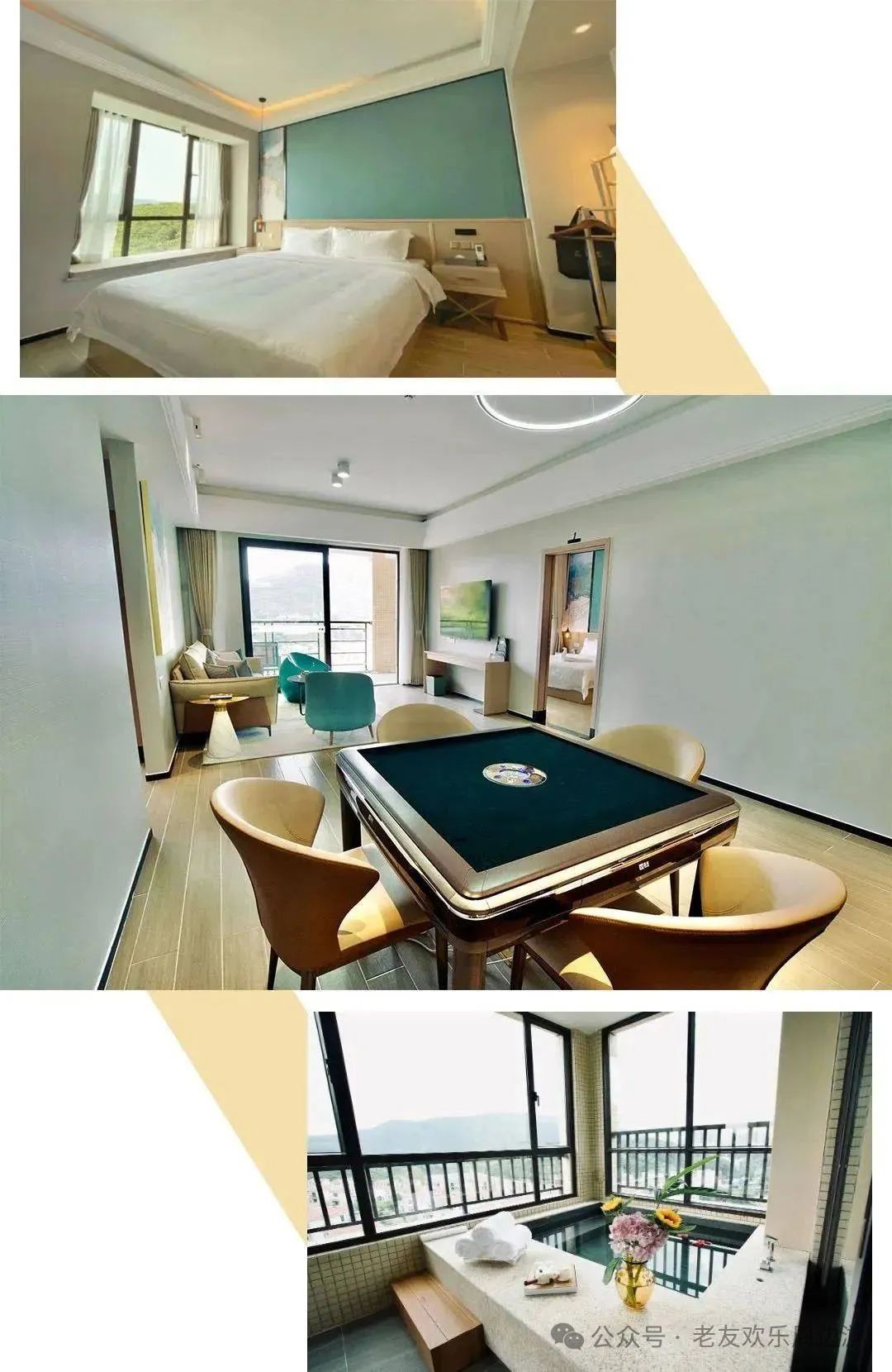 房间配置液晶宽屏电视、无线网络WIFI、自动麻将,是家庭出游的最佳选择。