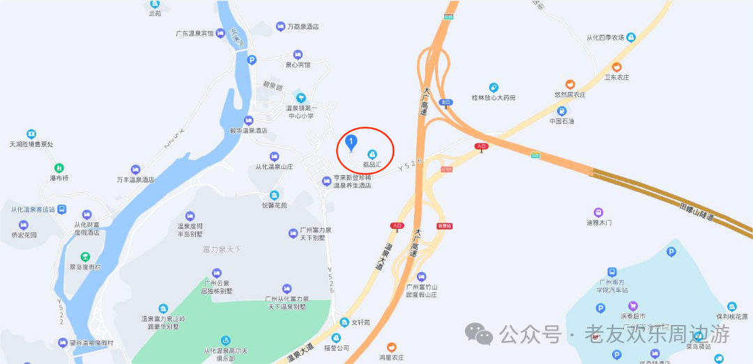 广州—京珠高速(或机场高速)—大广高速—大广高速温泉出口—105国道温泉方向—荔品汇