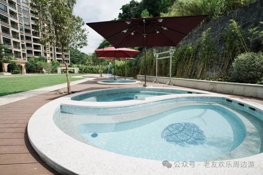 依山泉/儿童戏水池/儿童泡泡池/儿童沙池。户外还有公共温泉池,一边是美景,一边是温泉,泡温泉,赏美景,真是一举两得。