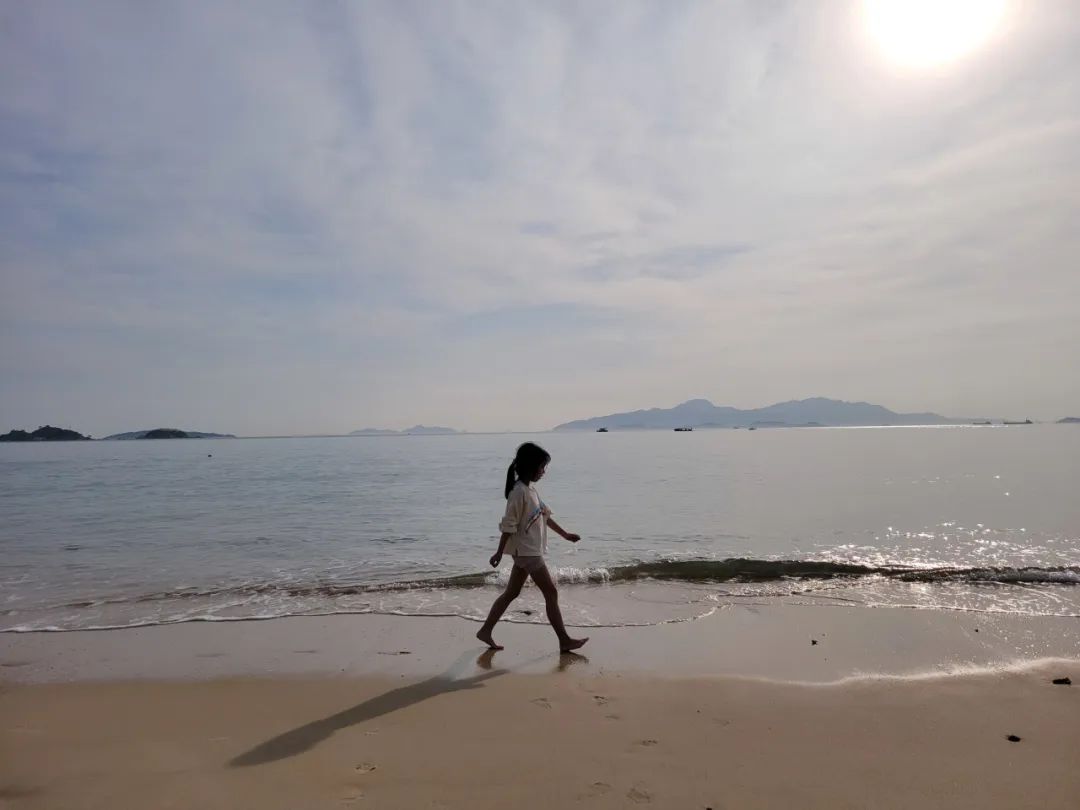 从我曾经特意飞到非洲为了去海边晒太阳的经历来看,我还是可以简单评论一下惠州的海滩。这片海虽然对喜爱沙滩热衷晒太阳的人来说,不是好的选择,但对孩子来说,一定是欢乐源泉。要说沙滩呢,不如说是砂滩,有些许硌脚,浅滩有有些泥泞,有限的细沙只有细细一带。但是对小孩子来说这都不是问题,挖沙子也不挑沙质,浪也不大,浅滩又特别适合捡贝壳,不用特别去赶海,在酒店的海滩上遛弯的工夫就捡了半瓶子蛤蜊。