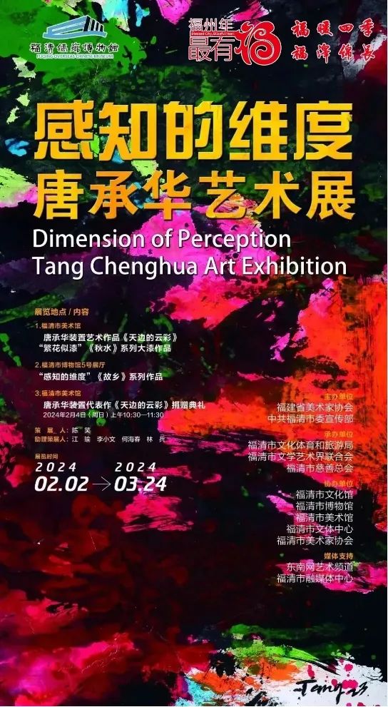 推荐词:展览展出唐承华教授捐赠给福清市的装置艺术代表作《天边的云彩》,以及在福清市驻留创作的纸本综合材料作品《故乡》系列、漆画《秋水》系列约100件作品。