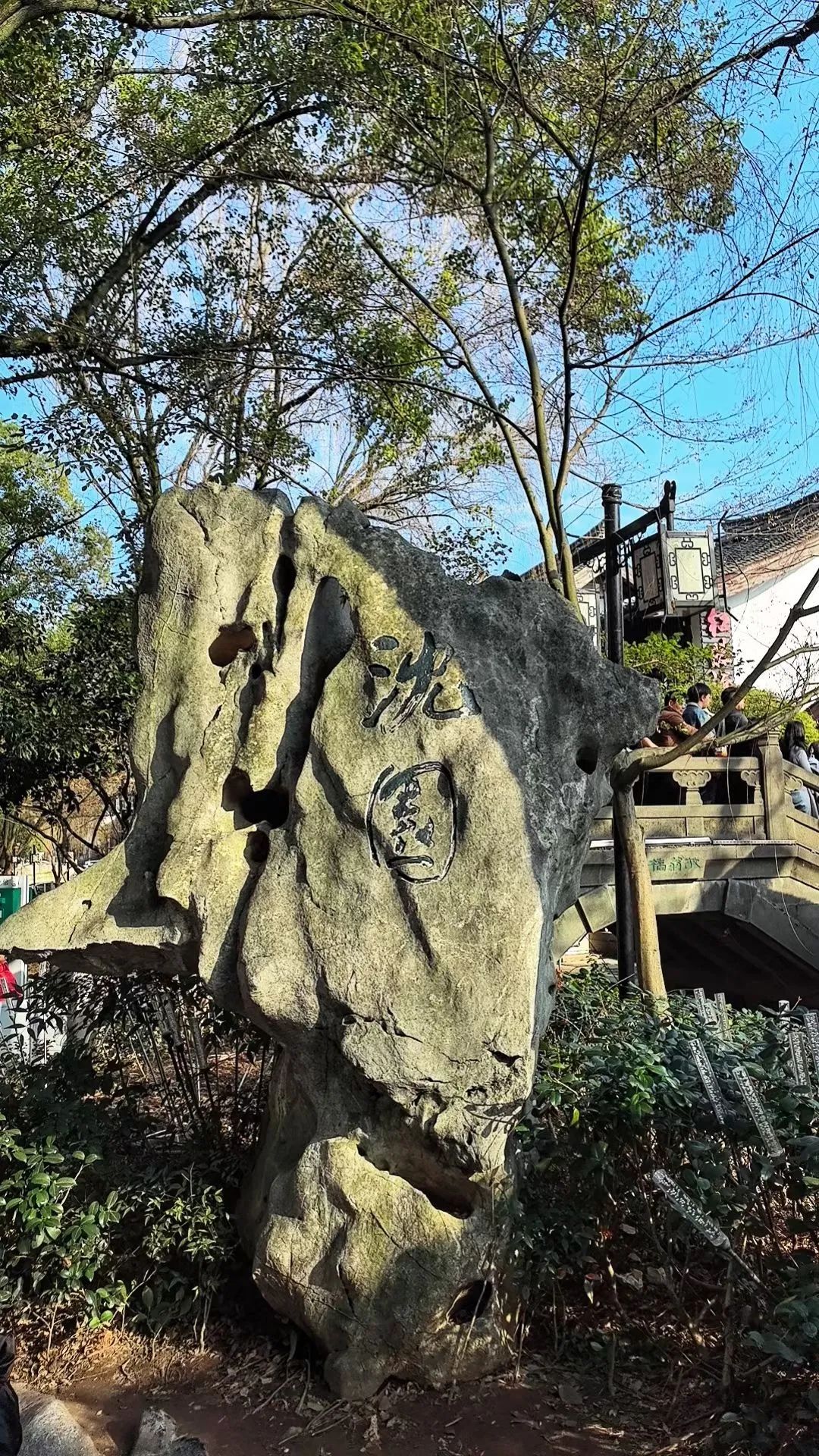 这是一处景以载情的地标建筑,处处流转着千年诗句,低吟着千年情思:在春波桥下溯“伤心桥下春波绿,曾是惊鸿照影来”的哀婉,在湖边柳下溯“梦断香消四十年,沈园柳老不吹绵”的潸然,在断云石边溯“坏壁旧题尘漠漠,断云幽梦事茫茫”的寂伤,在梅林枝下溯“城南小陌又逢春,只见梅花不见人”的凄凉。