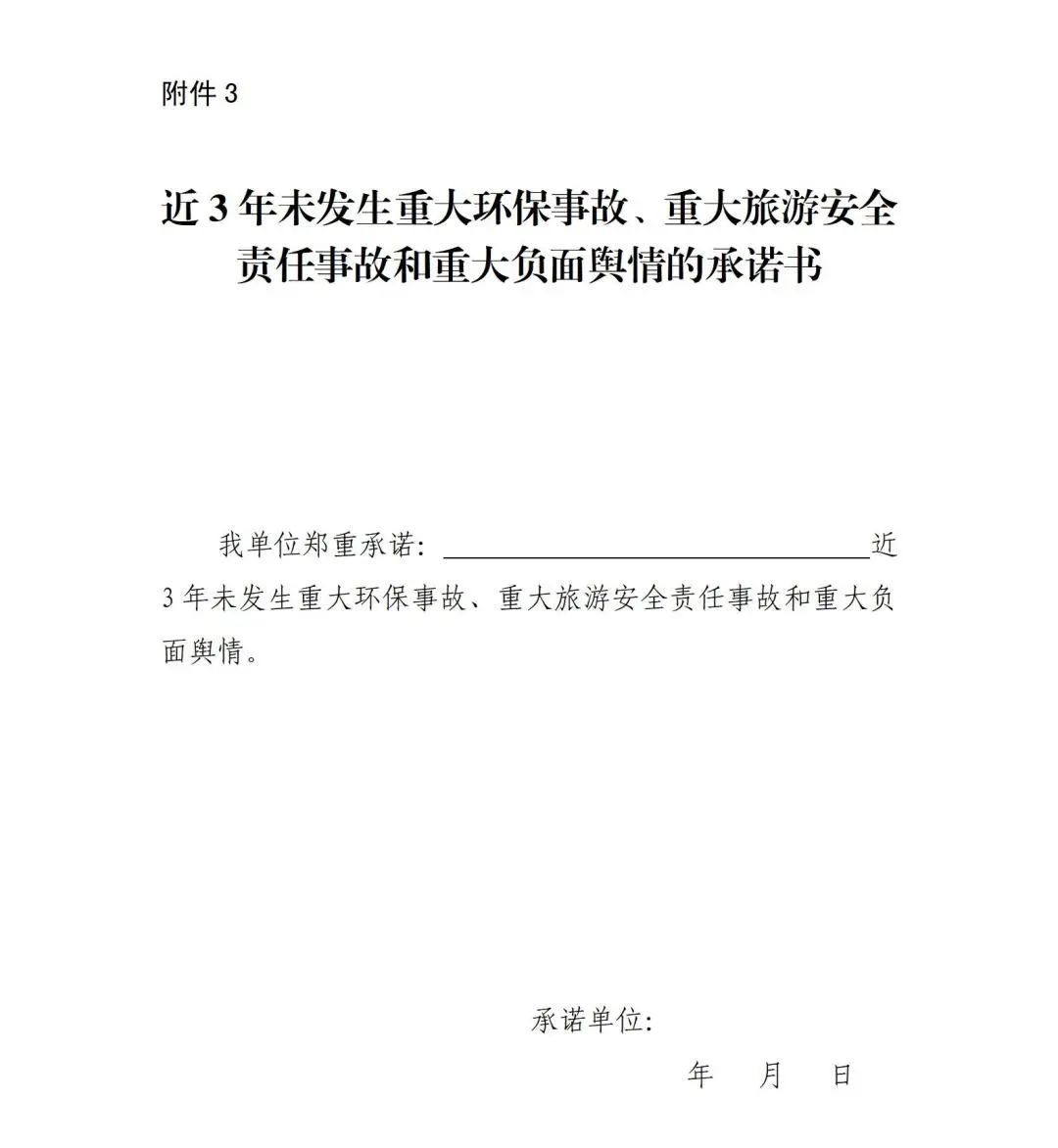 3、近3年未发生重大环保事故、重大旅游安全责任事故和重大负面舆情的承诺书;