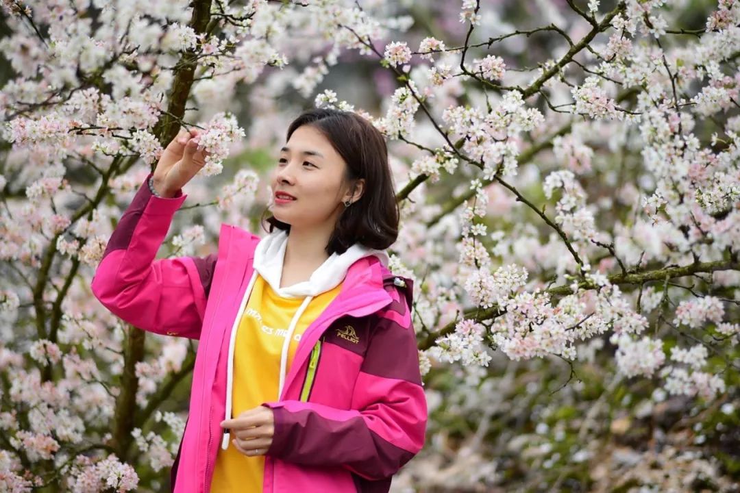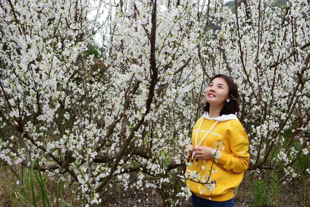 古道上行沿途一路可以欣赏李花,