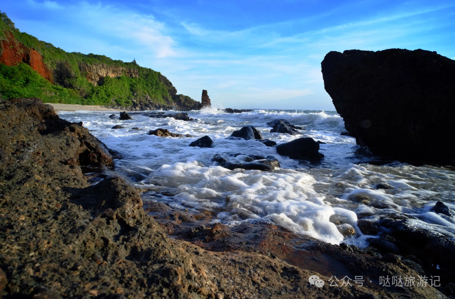 火山岩景观是这条路线的最大亮点之一。沿途所经之处,游客将可以欣赏到万年火山海岸的壮丽景色,感受到大自然的磅礴力量。风车海岸的风车们在微风中轻轻转动,仿佛为旅行者奏响一曲乐章。而儋州龙门激浪更是一个不可错过的目的地,这里有着壮丽的海岸线和清澈的海水,让人陶醉其中。此外,珍珠湾观景台也是一处绝佳的拍摄点,能够将整个美景尽收眼底。