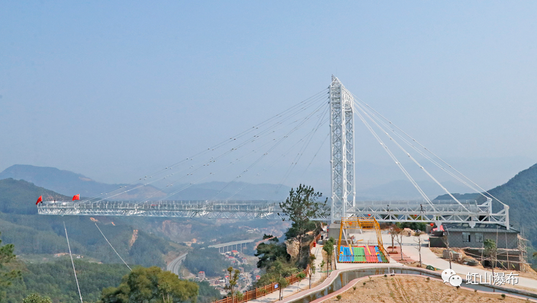 12:30前往车赴【虹山瀑布】位于福建泉州市,海拔高六百余米,年平均温度低于市区4至6摄氏度,空气请新,夏秋凉爽。蜿蜒的溪水从80多米的断崖中飞流而下,溅起的水雾在阳光的照射下形成一圈圈美丽的彩虹,虹山瀑布因而得名。我国古代著名的方志史学家何乔远游历至此地有感而诗曰“红日照天地,飞雪白纷纷;道者偶来此,雷霆殊不惊”。视觉感触双重享受!百米落差的彩虹瀑布+超吉尼斯记录的虹桥悬廊必定让你大吃一惊体验华东跨度最大的悬索飞船还有丛林穿越、网红秋千、划船、虹山土楼、儿童乐园......