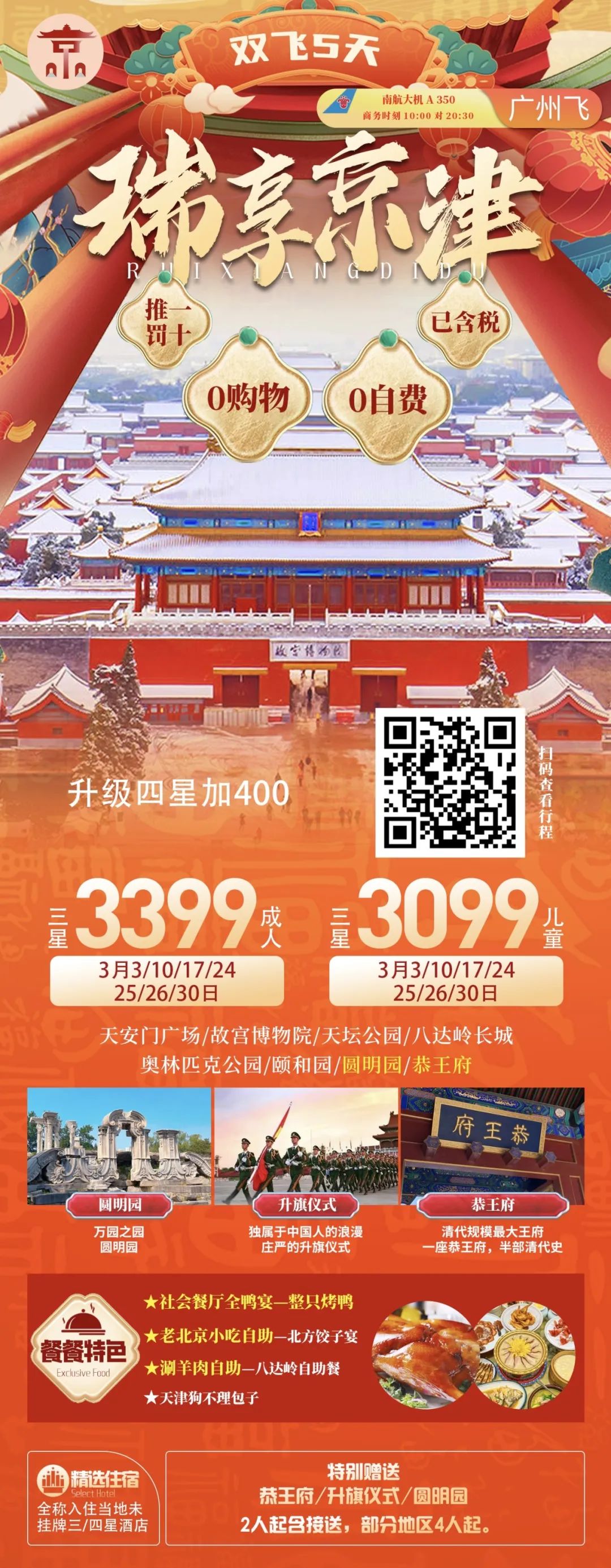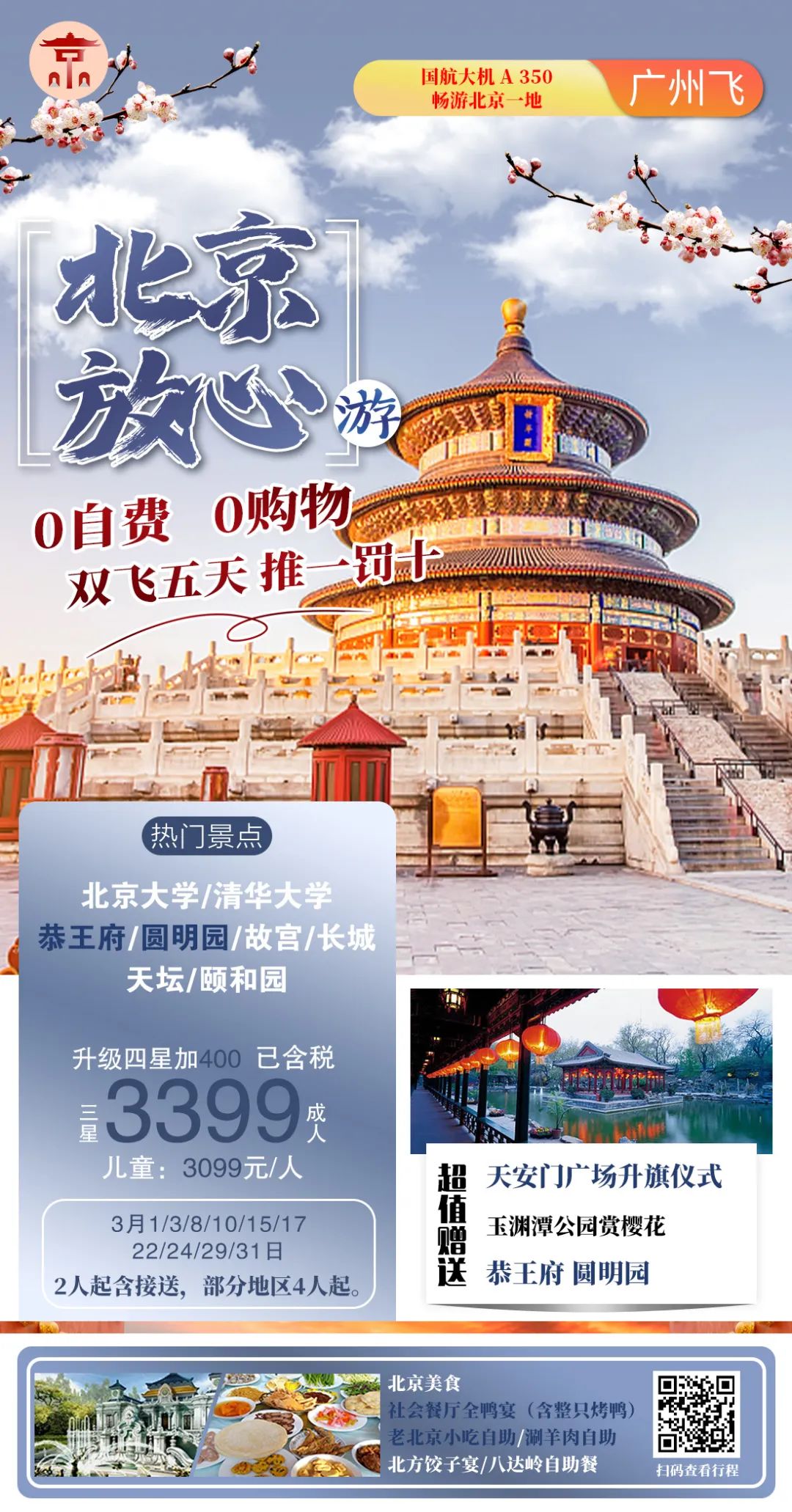 春日的北京,从来都是文人墨客们笔下的人间天堂。去爬一下层林浸染的长城,去走走漫天春日烂漫,满地尽是金黄的北京胡同,如油画一般的颐和园,去逛逛朱红的城墙与故宫,去远赴京城,一睹人间盛世颜!