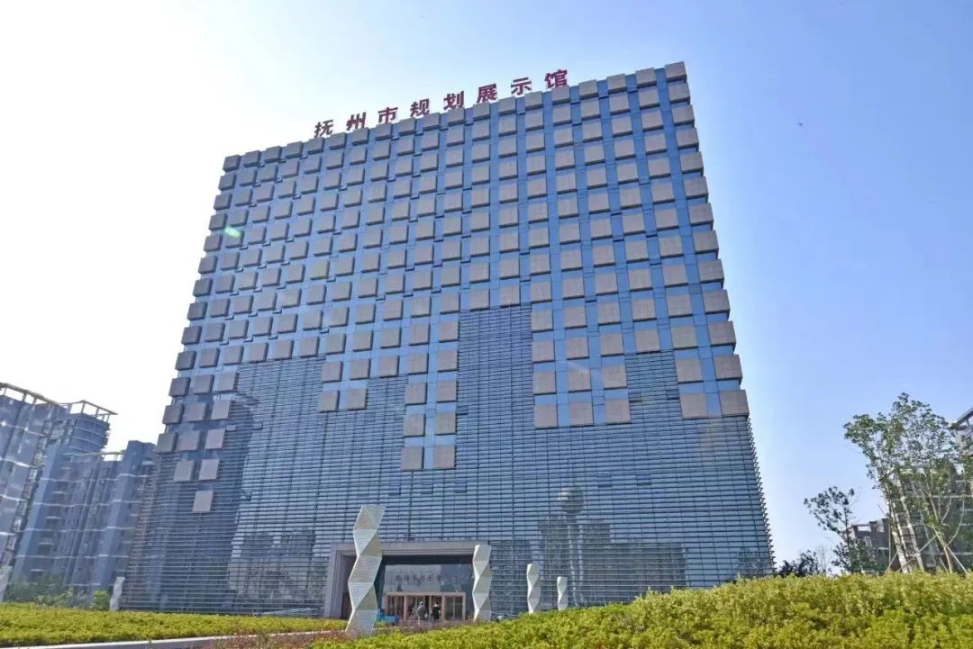 城市规划展示馆位于市区竹山路,总建筑面积63100平方米,包括地上51100平方米、地下12000平方米。展示馆大楼共13层,1至2层为展示馆,共分为17个展厅。展馆内在采用展板、模型等传统展示手段的基础上,大量使用了高科技手段,将激光成像、发光地图、电子翻书、多通道投影等现代声光电技术融入多项展示环节,全面展示了抚州的过去、现在和未来。