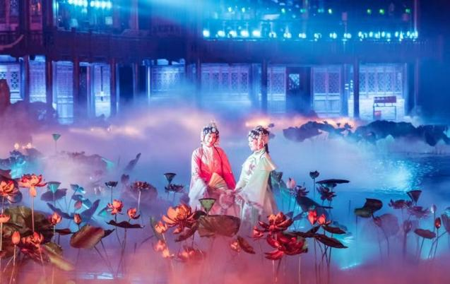 实景演出由杨澜团队倾力打造的寻梦系列大型沉浸式实景演出《寻梦牡丹亭》演出是以著名文学巨匠汤显祖所著临川四梦之《牡丹亭》剧本为题材,采用独特的日游夜演游园体验表演形式,参与并体验汤显祖大师的《牡丹亭》画卷中一步一景,那一颦一笑,再现杜丽娘和柳梦梅“良辰美景奈何天,赏心乐事谁家院”的动人情景。演出篇幅为《游园惊梦》《魂游寻梦》《三生圆梦》三折。