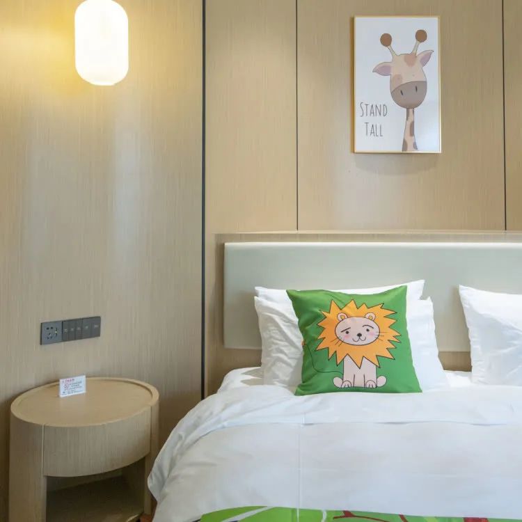 房间中满满的自然元素风格,棕黄的色调搭配绿色的细节点缀,给游客们带来满满的森林度假体验~