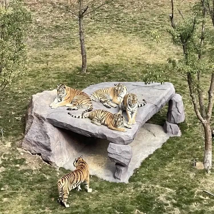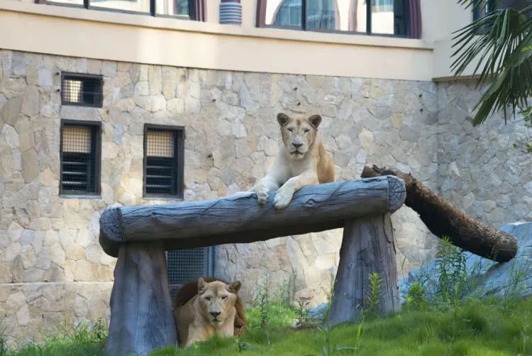 独特的圆形结构可以在四面八方观测到狮王在草地上闲庭信步。