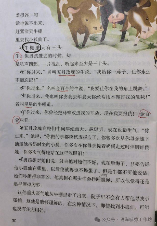 牛棚里:三头牛(五月玫瑰、金百合、星星)