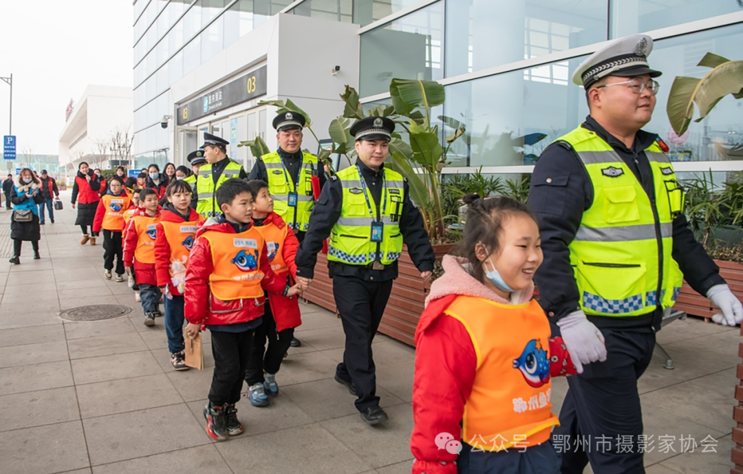 ▲ 与警察叔叔们手牵手步入大厅。