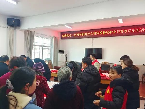 为深入落实二十大精神,开展文化助力乡村振兴,有效落实“学习贯彻二十大 真心为民办实事”文化惠民新时代文明实践活动,促进社区文化发展,建设和谐社区,1月23、24日上午,茅山风景区社区教育中心联合辖区马埂村、后河村分别开展了的2024年“迎春送福进社区”新时代文明实践活动。