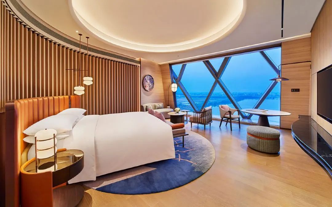 酒店配备337间典雅舒适的客房及套房,其设计和装饰撷取了江南水乡的写意婉约,又不失精致简洁的现代感,透过球体落地窗还可轻松饱览四季变幻的自然临水意境,客房布局经过精心雕琢,灵活贴心,更有设计多元的家庭主题套房精心设置创意直通梯,让亲子假期充满趣意。