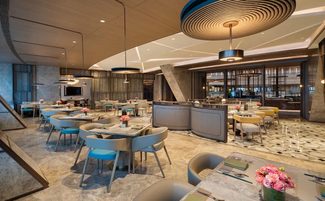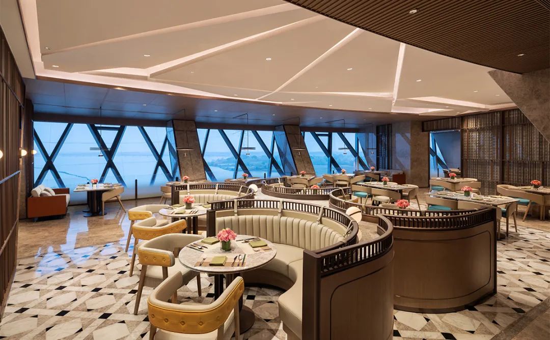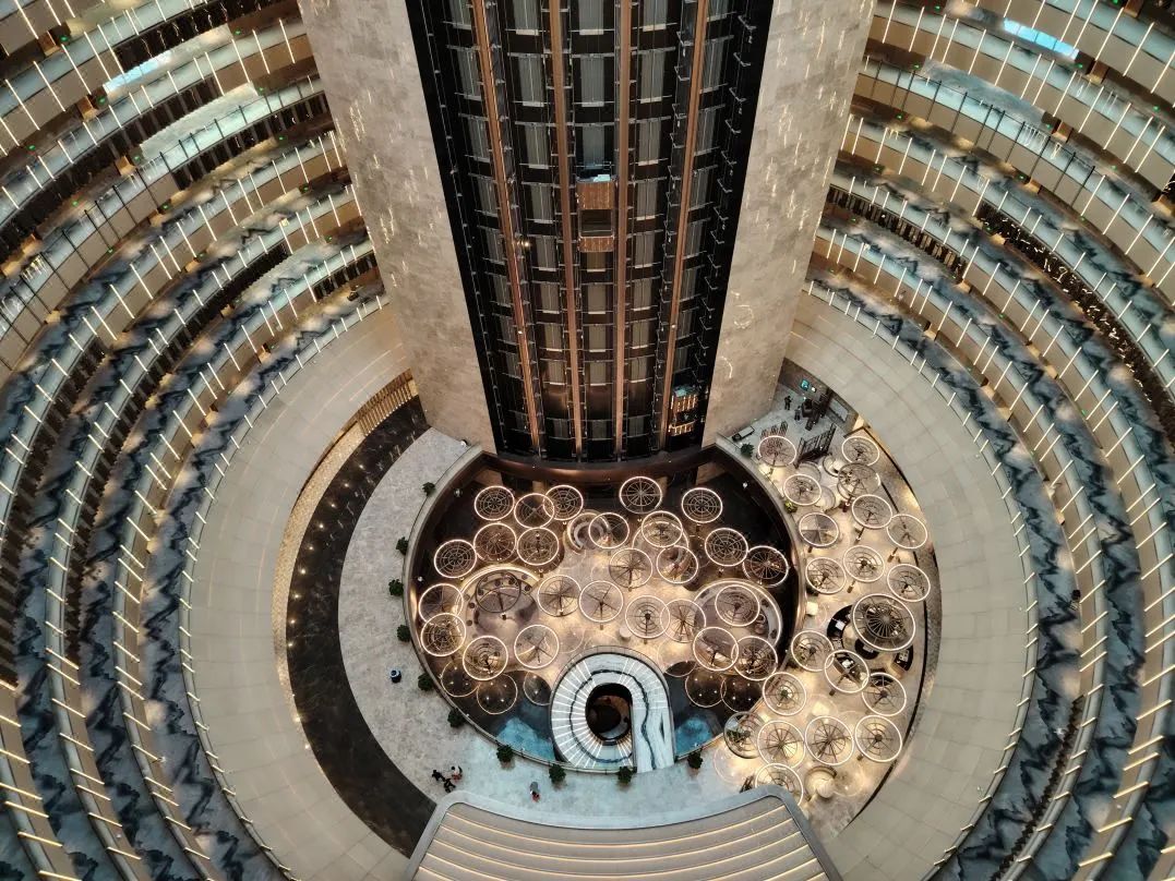 酒店的中庭大家或许有一点”眼熟“,但更具未来的科技感,弧度、圆形与玻璃穹顶,步入酒店犹如”走入太阳的内部“。