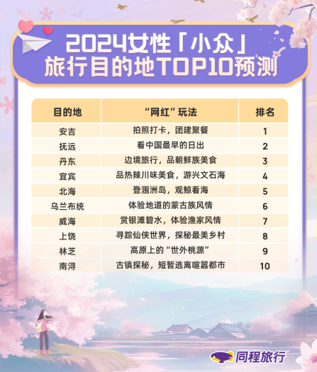 您现在的位置是:首页 > 国内旅游目的推荐 > 正文 国内旅游目的推荐 同程旅行发布2024女性旅行趋势:女性撑起文旅消费“大半边天” admin2024年03月05日 18:19:18国内旅游目的推荐101 女性出境游意愿高于男性。3月4日,同程旅行发布了《2024中国女性旅行趋势报告》(下称《报告》),基于同程旅行平台大数据分析预测了2024年度女性消费者的旅行趋势。《报告》显示,在出游目的地选择方面,2024年女性消费者不仅追“网红”城市,同时也爱历史文化名城。除了追“热门”,女性对于挖掘小众目的地也更有兴趣,安吉、抚远、丹东、宜宾等预计将是今年比较受关注的国内游小众目的地。2024年女性的出境游意愿略高于男性,泰国、日本、新加坡、巴厘岛等将是关注度较高的出境游目的地。同程旅行数据还显示,在文旅消费方面,女性的消费频次相对更高,同时也是多人出游行程的实际预订者,特别是亲子家庭行程主要由女性完成预订。相对而言,女性对于碎片化文旅产品的兴趣更大,对于出游品质的要求相对更高。2024女性国内出游风向标:“网红”热门与小众精致各得其所同程旅行平台相关数据显示,在旅游消费持续火热的当下,广大女性旅游爱好者的消费偏好越来越多元化。对于喜欢热闹与潮流的“95后”及“00后”女性而言,“网红”目的地依然是“打卡”首选。《报告》预测,今年比较受女性青睐的国内长线游目的地主要有大理、成都、重庆、西安、长沙、苏州、杭州、厦门、三亚、洛阳等。同时,一些追求出游品质和个性化体验的女性消费者非常热衷于挖掘“小众”目的地。2024年年初以来,同程旅行客户端上的“同程榜单”中最受女性用户关注的国内小众旅游目的地主要有:安吉、抚远、丹东、宜宾、北海、乌兰布统、威海、上饶、林芝、南浔等。2024女性出境游意愿高于男性,出游需求更趋多元化、碎片化同程旅行的最新调研数据显示,2024年女性的出境游意愿超六成,略高于男性。在目的地选择方面,泰国、日本、新加坡、巴厘岛、俄罗斯、韩国、西班牙、新西兰、马尔代夫、芬兰等相对比较受女性消费者欢迎。在具体的玩法方面,00后和90后女性在国人的传统热门出境目的地总能找到新的“打开方式”:到泰国看演唱会享受惬意假日,去日本购物休闲,到巴厘岛看火山,到俄罗斯“撸熊”,去芬兰追极光,或选择一个喜欢的城市旅居数日。同程旅行的相关数据表明,与男性消费者相比,女性消费者的出境游需求更趋多元化、碎片化,从老少皆宜的地标景点“拍照打卡”到小众目的地的深度体验,再到强调“松弛感”的一地“旅居”,女性都是潮流的引领者。“80后”、“90后”妈妈们最爱亲子主题景区,“00后”更爱碎片化玩乐产品《报告》来自同程旅行的文旅预订数据显示,女性的文旅消费意愿显著高于男性,女性用户全年消费2次以上的比例高达55.4%,高于男性用户的44.5%。女性不仅消费频次相对更高,同时,在结伴出游和家庭出游等多人同游的场景下,女性通常都是行程预订的主导者。超过2人次的景点门票预订中由女性用户完成的订单占比平均为约为53%,其中,亲子家庭类出游的预订由女性完成的订单占比平均约为54.4%。在文旅消费领域,女性消费者实际上支撑起了“大半边天”。同程旅行平台文旅消费大数据的分析预测显示,2024年度女性消费者文旅消费热点将主要集中于动物园、游山玩水、历史遗迹、园林古镇、游乐园等十个主题,与往年同期基本一致。分年龄看,“80后”、“90后”女性的文旅消费偏好更多集中于适合亲子及家庭出游的主题景区,例如动物园、游乐园等,而“00后”女性的文旅消费则相对更集中于适合独自玩乐或适合闺蜜游及情侣一起出游的主题上,例如寺庙祈福类、演出赛事及其他一些休闲碎片化产品。进入3月份以来,为迎接2024年度“女神节”的到来,同程旅行联动全国100多家知名景区陆续推出了女士专享优惠活动,相关景区推出了1折至9折不等的门票折扣,天津盘山风景名胜区、武汉花博汇等则在3月8日当天为女士们直接送上了免票福利。一些爱玩儿又会省钱的女性用户对相关专属优惠关注度较高,最近一周内同程旅行平台“女神节”相关的搜索量环比增长超200%。跨国追星刷演唱会、熬夜看电竞,女性比男性更会玩儿无论是观光打卡,还是美食购物,旅游的本质就是“文化体验”,通俗的说法就是 “玩儿”,积极的旅游者通常都很会玩儿。《报告》来自同程旅行平台的数据显示,女性用户对于电竞赛事、演唱会门票、电影票以及各类旅游演艺等碎片化玩乐产品的兴趣均高于男性用户。“会玩儿”还体现在对旅途中各类碎片化服务的消费意愿上。同程旅行平台的出行大数据显示,相对于男性用户,女性用户对于贵宾候车(候机)服务、机上WiFi、免税店等碎片化增值服务和信息的关注度更高,购买比例也更高。在旅途住宿方面,女性用户对于住宿设施的品质和个性化有更高的要求,平均每晚住宿花费水平略高于男性,同时对精品民宿等个性化住宿的关注度也高于男性。 转载请说明来源于"旅荐网",部分内容转载自网络,如有侵权请联系qlwl@foxmail.com删除 本文地址:https://www.15386.cn/post/17272.html 上一篇 欢乐亲子游,让新学期活力全开! 下一篇 深圳周末游玩:3.9-10新晋潮玩网红打卡--宋城演艺《广东千古情》、西樵听音湖、逢简水乡、清晖园、华盖