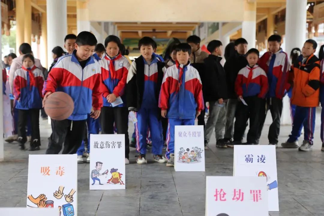 在“普法潮玩集市”,少先队员们争先恐后参与到法治灯谜、避开犯罪陷阱、法条知多少、法治迷宫、法律知识套圈、违法犯罪一网打尽等游戏中,通过回答关于未成年人保护、预防性侵、预防校园欺凌、预防网络电信诈骗等问题,获得积分并成功兑换通关小礼品。