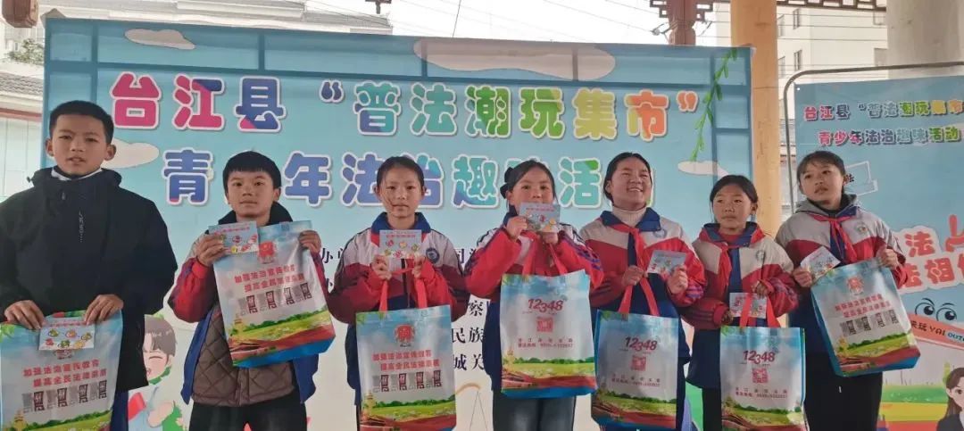 近日,为了上好开学第一节法治课,护航未成年人成长,台江县司法局联合县检察院、县公安局、县教科局和团县委,在民法典主题公园组织开展了“普法潮玩集市”青少年法治趣味活动,让学生们零距离、沉浸式的体验别样的学法乐趣,在“游”和“玩”中增长法治知识。