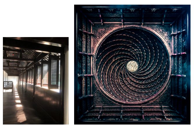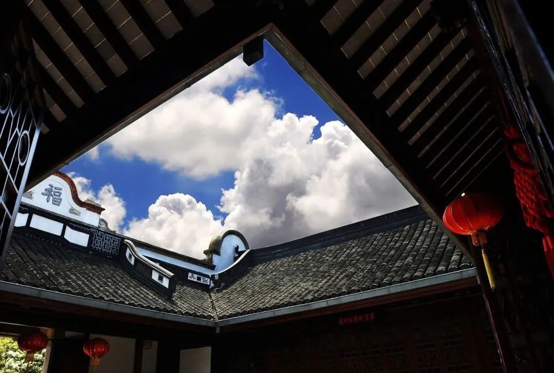 建于1884年的“天后宫”是江南殿堂式古建筑,也是上海历史上规模最大、形制最全、规格最高的妈祖庙。如今恢复的是“天后宫”的戏台、门楼与东、西看楼。戏台位于中央,东西看楼居于两侧,建筑总体为两层高。最具看头的部分就是“藏”在二楼戏台顶部、用中国传统技艺“榫卯”技艺拼搭而成的藻井。