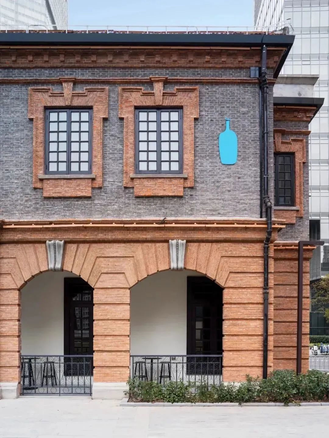如今,这处韵味十足、古色古香的建筑,成为了全球知名精品咖啡品牌蓝瓶咖啡的中国内地首店,也是苏州河边的又一网红打卡点。