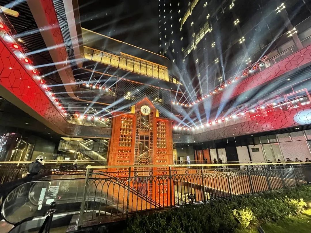 位于中庭一侧、颇具代表性的复古钟楼,以红砖为材料,顶部嵌入时钟,在不同的光线下呈现出不同的光影效果,成为名副其实的热门打卡点。